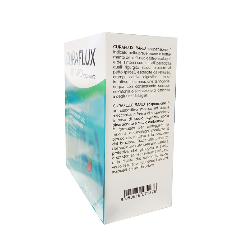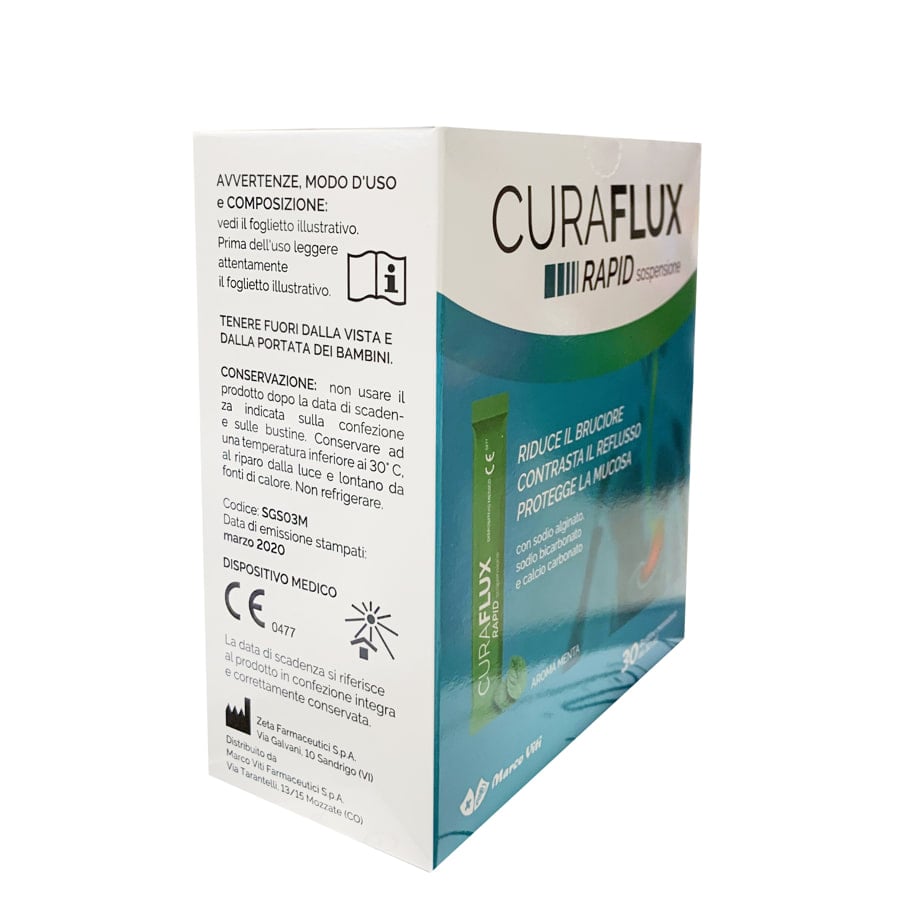 Marco Viti Curaflux Rapid Sluzione Orale è un dispositivo medico indicato nella prevenzione e trattamento del reflusso gastro-esofageo e dei sintomi correlati all'iperacidità .