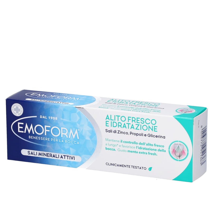 ** PRODOTTO ORIGINALE, REGOLARMENTE CONSERVATO, CON SCADENZA RAVVICINATA O FINE SERIE O CON ASTUCCIO ESTERNO LIEVEMENTE DANNEGGIATO ** Il dentifricio Emoform® Alito Fresco e Idratazione grazie alla sua formula innovativa clinicamente testata, sin dai primi giorni di utilizzo aiuta a mantenere il controllo dell’alito donando un’immediata sensazione di freschezza che dura a lungo.