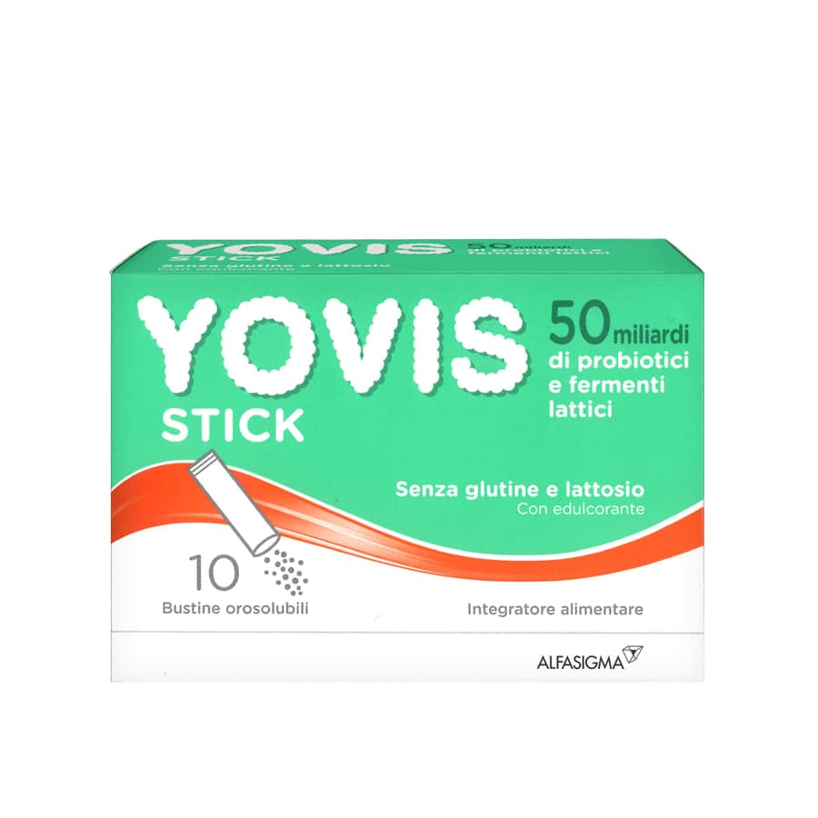 Yovis Stick contiene sorbitolo: un consumo eccessivo può avere effetti lassativi. Può essere utilizzato in gravidanza e in allattamento. Non superare la dose giornaliera consigliata. Gli integratori alimentari non vanno intesi come sostituti di un sano stile di vita e di una dieta varia ed equilibrata. Tenere fuori dalla portata dei baÂmbini di età inferiore ai 3 anni.