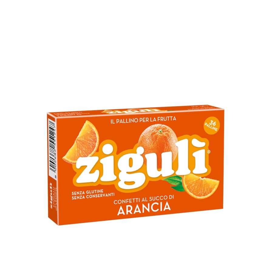 Destrosio, zucchero, succo di arancia concentrato e disidratato al 3,9% (pari al 23% di succo di arancia), sciroppo di glucosio, addensante: gomma arabica, acidificante: acido citrico, antiagglomerante: magnesio stearato, biossido di silicio; succo di limone concentrato, aromi, sostanze alimentari coloranti (estratto di cartamo, concentrato di carota, ribes nero), agente di rivestimento: cera carnauba.
